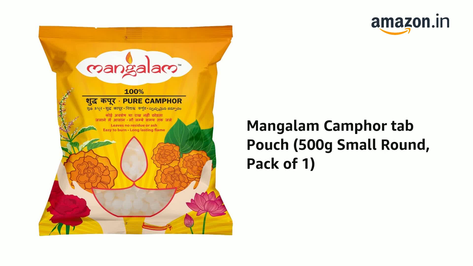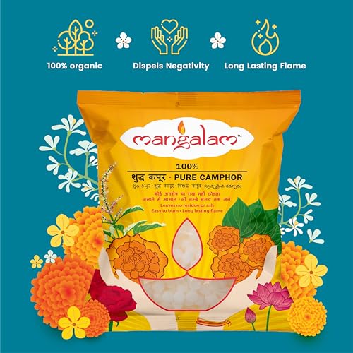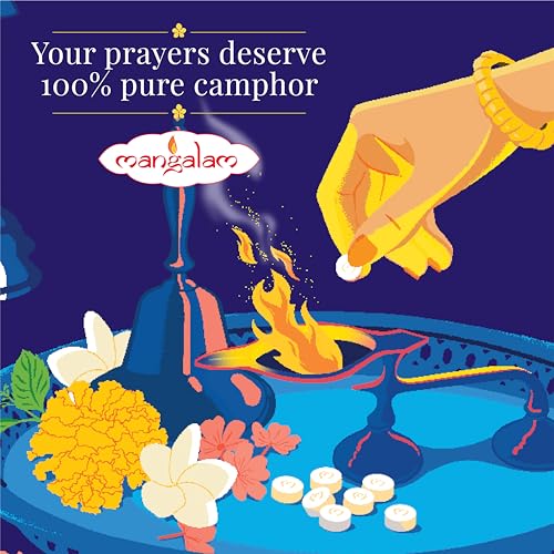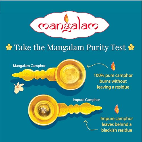 • EASY TO BURN LONG LASTING FLAME: The convenient size and shape of Mangalam Camphor Tablets makes it easy to grip. Moreover since the tablet is pure camphor it burns instantly and does not require much effort. The flame lasts the duration of your aarti
