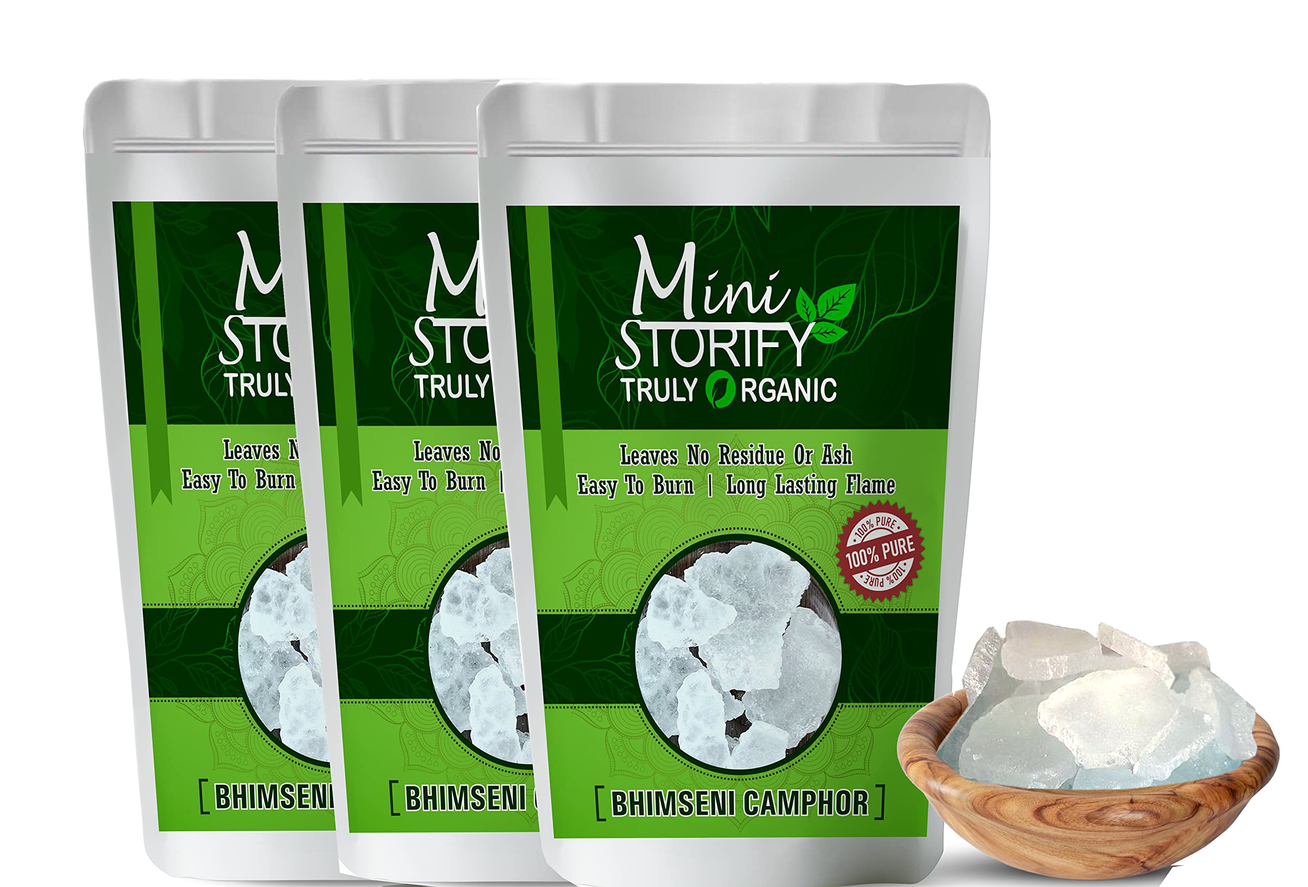 Mini Storify Truly Organic Organic Bhimseni Original - Pack of 3-100g Each - Pure, Natural & Premium Bhimseni Kapoor