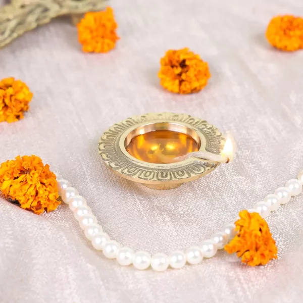 High-Quality Brass: Crafted from high-quality brass material the brass diya exhibits a smooth and lustrous finish. The use of brass not only enhances its appearance but also ensures its durability and resistance to wear and tear.