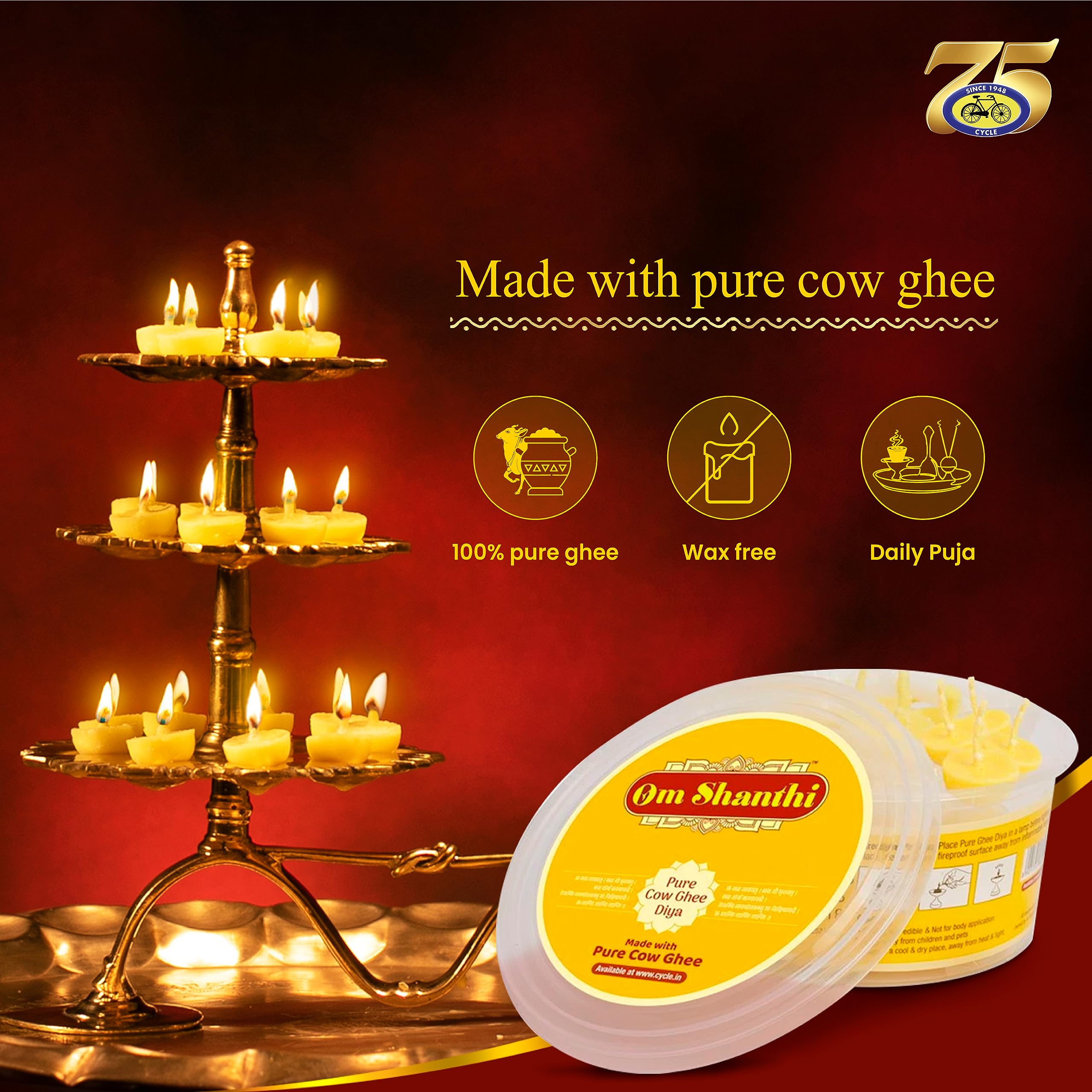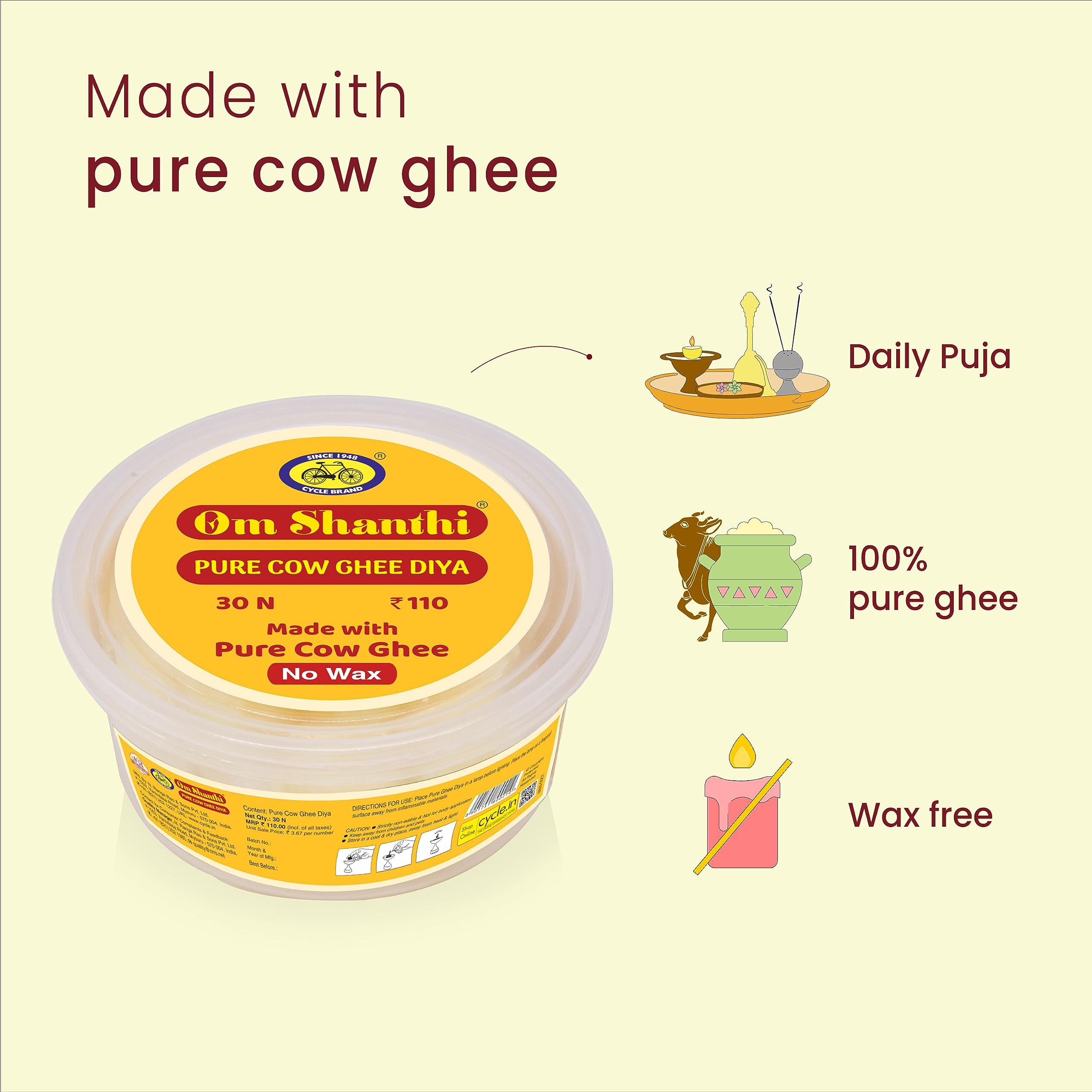 HomeHomeSpiritualPooja ArticlesOm Shanthi POOJA MADE PURE Plastic Cycle Pure Cow Ghee Diya/Batti/Wicks (100% Wax Free) For Daily Puja Festivals & Rituals - Pack Of 2 (100 Nos Per Pack)