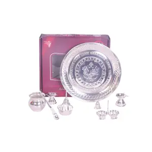 Dynore 9 pcs Silver Coated Puja Set