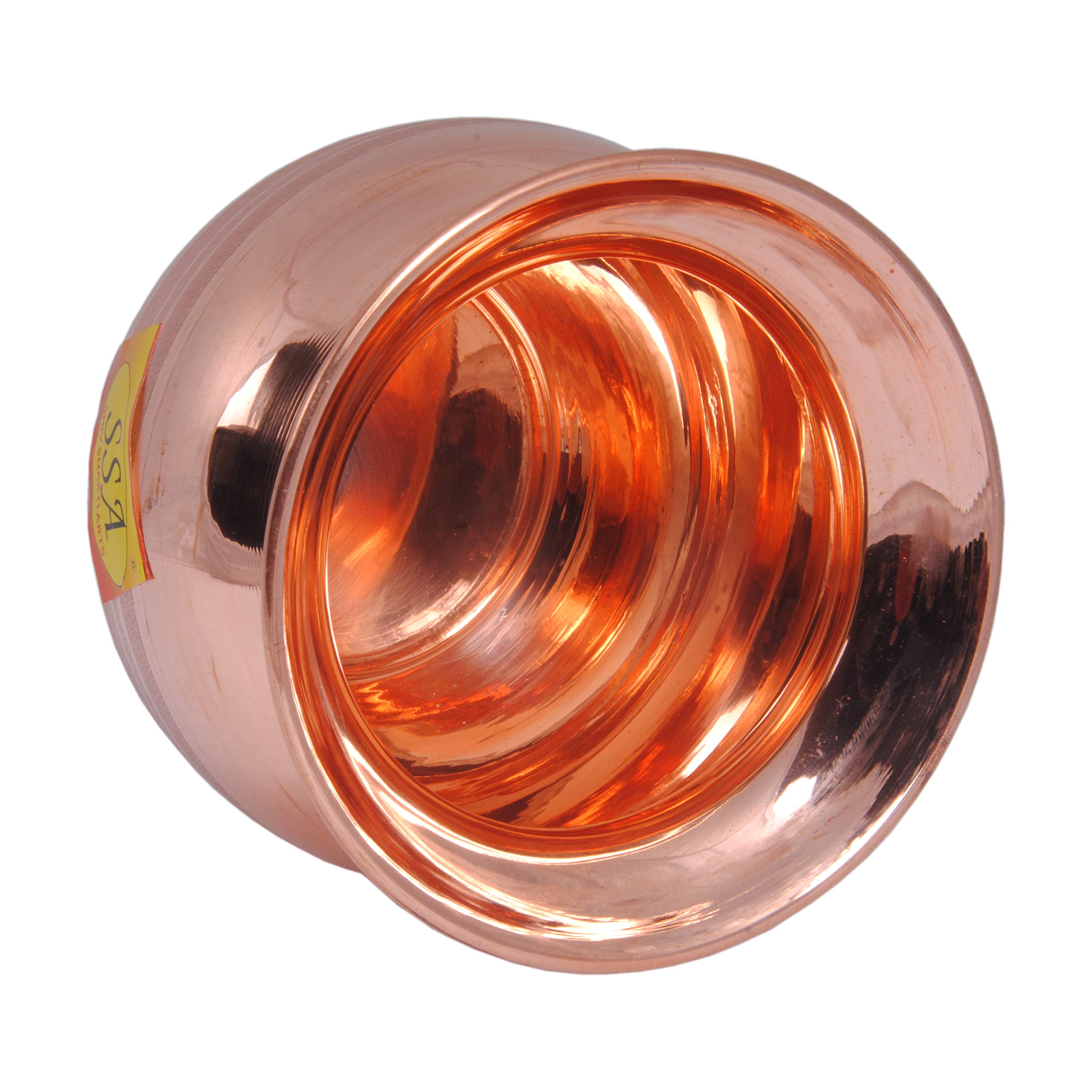 At this time when the world is riddled with Pollution our countrymen are using high potency tablets even for minor problems which is spreading poison in their bodies. Our Rishes/Sadhus Saints and even doctors have found a very easy method to deal with such disorders. The best remedy to overcome these problems is to store water in a copper utensil overnight and drink four glasses every morning. After this you can wash your mouth and brush your teeth. It is also advisable not to take tea for at least 45 minutes. Patients who cannot drink four glasses of water at a time can start with smaller quantity and increase the quantity gradually. There is no disease in the world which cannot be cured by this method. It is useful to drink water before sunrise for all including healthy persons. We request everybody to propagate this every morning whosoever is suffering from any diseases Care Tips a) Clean your copperware by hand and avoid dishwasher as the detergent can cause oxidation leading to permanent damage. b) Use a solution of equal quantities vinegar or lemon juice and salt diluted with some water at such times but don't use it regularly. c) Avoid scratchy cleaners like steel wool. d) A simple soft cleaning liquid on soap base hot water and a soft washing cloth is best for daily use. e) Use Copper Shining Powder for cleaning the copper utensils. Completely safe and gentle on hands. f) Copper Utensils Tarnish from time to time. This is Normal for an Authentic Copper utensils. ; Many Customers Love the Vintage/Antique Tarnished Look but Care Instructions for Minimizing and Removing Tarnish are Provided with Order