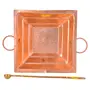 • Copper Hawan Kund No 18 Dimension: Length-35 cm Width-35 cm Height-11.5 cm Weight-1380 gram::Brass Hawan Spoon Length-30 cm Weight-95 gm appx