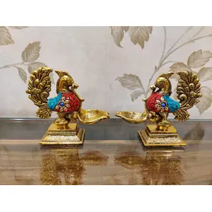 German Silver Peacock Diya Pair with...