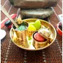 BulkySanta Pure Brass Pooja Thali Set | Brass Plate Size - 4 inches (Set of 5 - Plate, Glassia, Spoon, katori, Sindoor dibbi) (WITHOUT GIFT BOX)