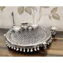 Traditional German Silver Coated Pooja Plate Set Every human being wants to have a Spiritual Connection with their Almighty and Prayer is the best way to have that Spiritual Connection. We try to make those prayers auspicious and as traditional as possible. Product Details: The Pooja Set is made of German Silver Coating and consists of all traditional items used in the Pooja. Benefits: German Silver is one of the materials that humankind has been using for some time. Keeping its benefits in mind and with advanced technology Usage: This Plate Set can be used while performing different Poojas on different occasions like Rakhi Karwa Chauth Diwali Pooja and other Pooja's. Cleaning: For cleaning use a soft sponge and liquid soap. German Siler will maintain its Glossiness. Preservation: German Silver is the friendliest metal in the environment and is easy to recycle making it the greenest natural metal. To make its life longer always dry them after washing with a cotton cloth and keep them in a dry place. If items are not in use store them at a dry place in a dry plastic bag.