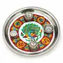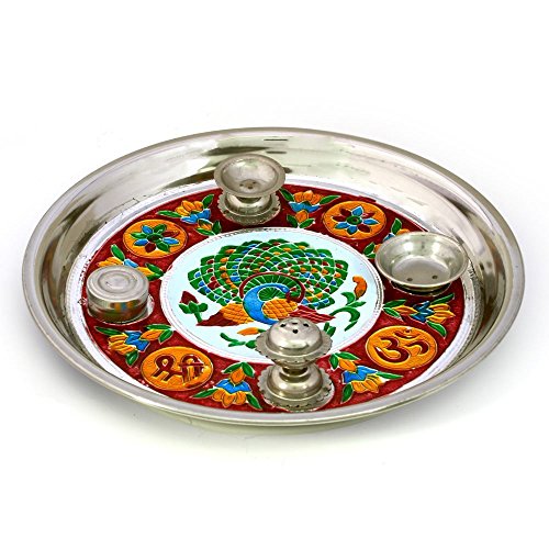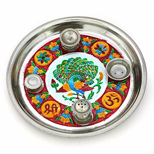 Little India Handcrafted Minakari Shubh Laabh Mayur Pooja Thali (296, Silver)