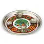 Ethnically designed and exclusively hand cafted pooja thali. This shubh laabh pooja thali is made of stainless steel. It is decorated with meenakari work which gives it rich look.
