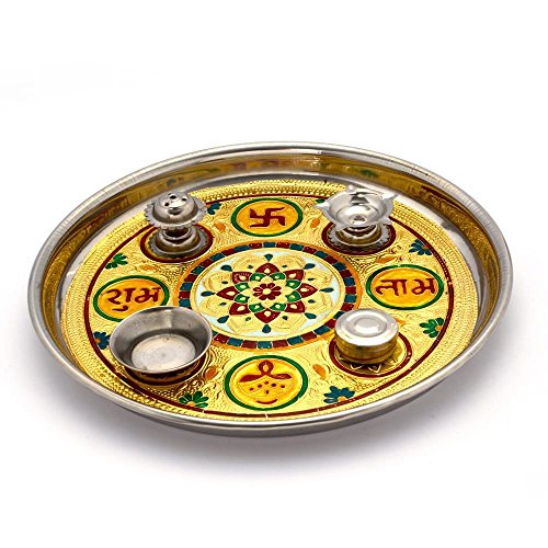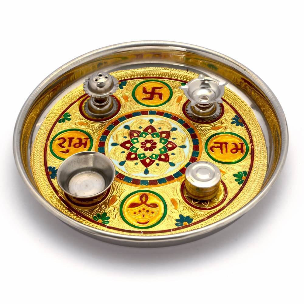 Package Contents: Meenakari Work Shubh Laabh Decorative Pooja Thali