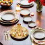 This is a dinnerware thali plate set consists of 1 plate (Thali) 4 bowls 1 tumbler 1 dessert spoon 1 fork knife. In India most of their dishes are served simultaneously in a thali. A thali is a round platter with an eared rim. Entire meals can be served using this simple plate. The thali is generally made with steel or copper. Other dishes served on a thali include vegetables yogurt chutney and pickles. In restaurants vegetarian or meat-based thalis can be served. Thali is delightful ways to enjoy Indian cuisine. It serves a balanced meal in itself and the flavours are so well rounded that palates will certainly be satisfied. Care Tips: - Clean your copperware by hand and avoid dishwasher as the detergent can cause oxidation leading to permanent damage. Use a solution of equal quantities vinegar or lemon juice and salt diluted with some water at such times but don't use it regularly. Also avoid scratchy cleaners like steel wool. A simple soft cleaning liquid on soap base hot water and a soft washing cloth is best for daily use.