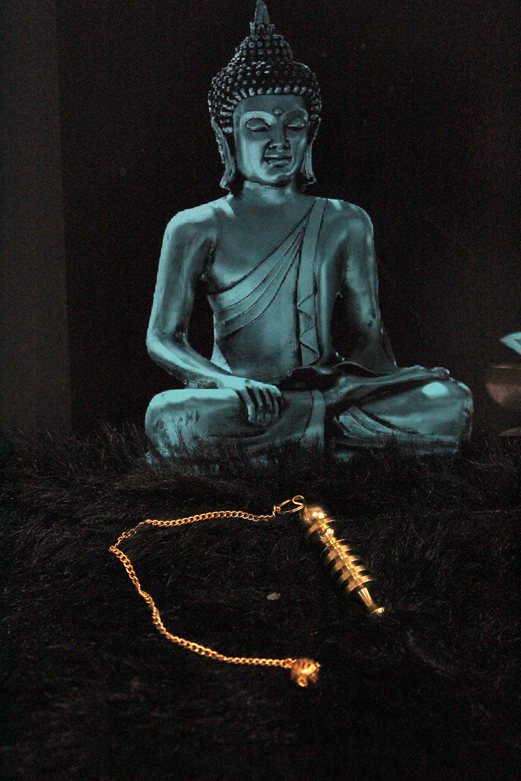 JET Isis pendulum with 4 Rings Plate Discs Metal Isis Brass Pendulums with Pouch. Approximately 8 inch long chain + 2 inch long Pendulum. Free 40 page booklet Jet International Crystal Therapy. Kindly note that since all our products are handcrafted there