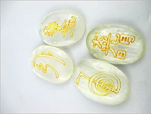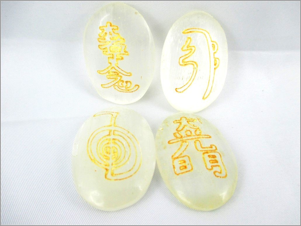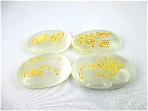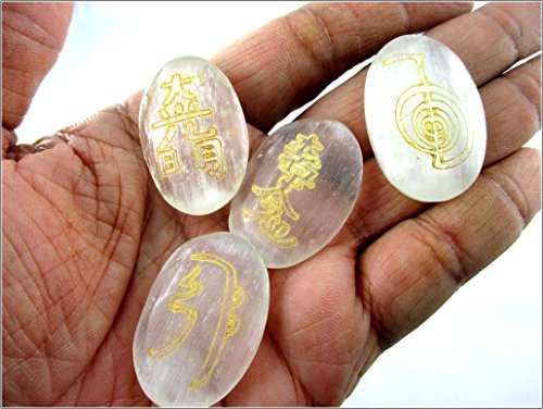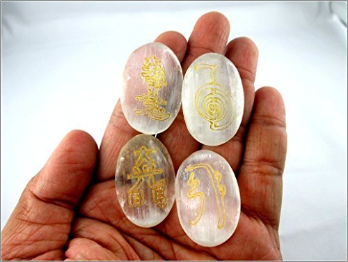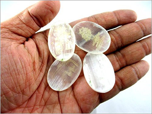 A+ Top Quality Selenite Oval Usui Stone Sets Gemstones. Best for Healing Positive Energy Reiki Meditation Peace of Mind; Comes with a beautiful velvet pouch. Also useful for Stress Anxiety Issues Chakra Healing Mental Imbalance Crystal & Massage Therapy S