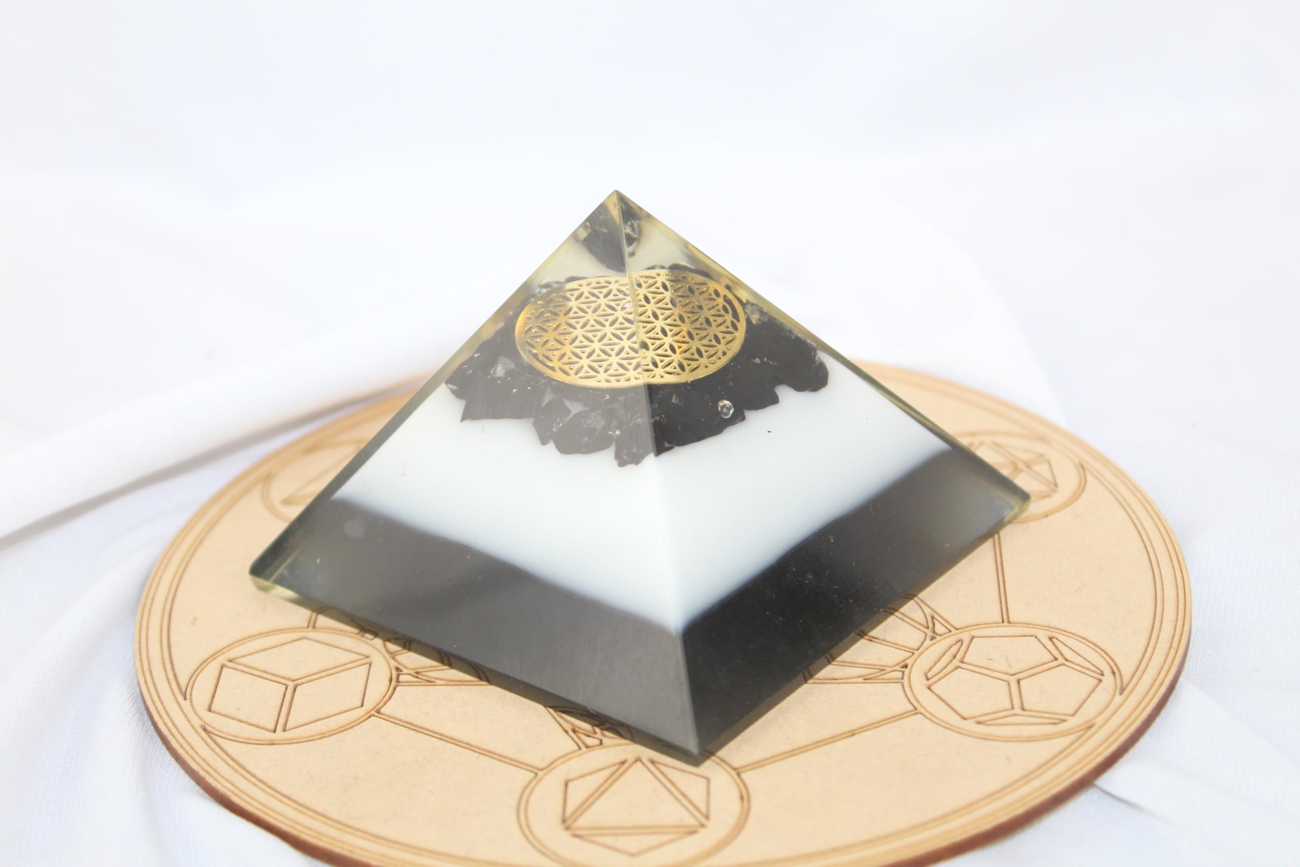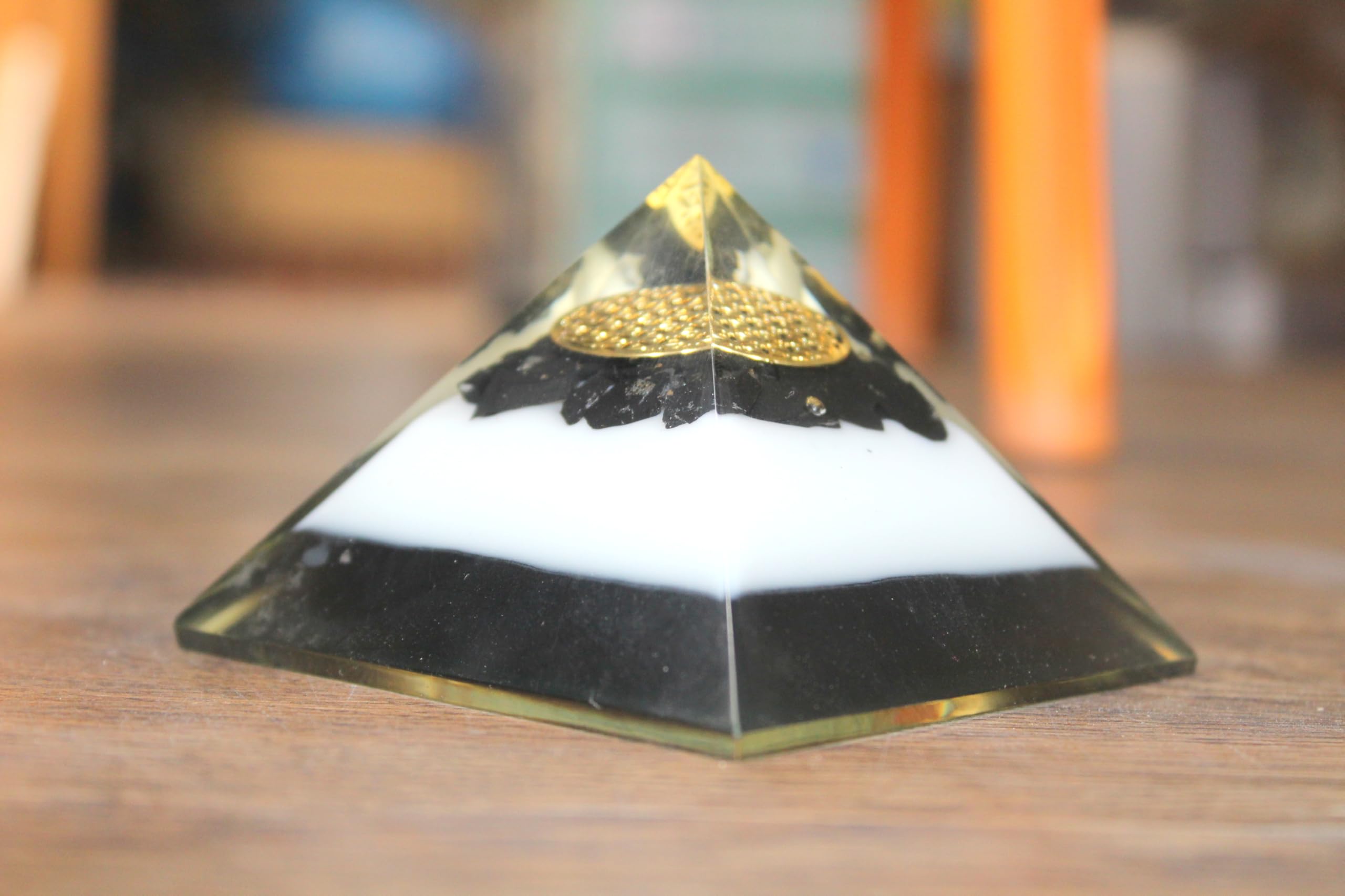 Brand: JET INTERNATIONALProduct Name: JET TOURMALINE + SHUNGITE METAL FOL ORGONE PYRAMID APPROX 3.5- 4 INCH . Purpose: When our chakras are blocked or not in balance the free flow of energy is impeded leading to physical emotional mental or spiritual dis-ease. Crystals help us unblock and activate them. .Description: Best for Healing Chakra Balancing Positive Energy Meditation Sound Sleep Gift and many more applications. Gives great sense of Spiritual Awakening Mental Peace Psychic Horizon Magical Divine They can be used in many different methods of healing. They can be used to heal the entire body or aura or they can be used on a specific area of the body or on a particular chakra. Removes all bad energy evil forces negativity wrong choice. Best suited for Health Wealth Progress Prosperity Family Bonding Long Lasting Relationship. Stress Relief Crystal Therapy Good Luck Fortune Self Esteem. To program a crystal for specific use or with specific energies sit quietly away from distractions or strong electrical devices and external energies then hold the crystal in front of you clear your mind and focus on the stone. Give the crystal a cleanse with white light as explained above. Concentrate on the specific energy that you wish to program the crystal with and 'transmit' the energies and thoughts from your mind directly to the stone. BenefitsEnhances; awareness visualization intuition psychic abilities.Enhances happier moods very noticeable.Clear's negative entitiesHelps reach higher vibration of energiesHelps cleanse the chakra's.Disclaimer Jet International Brand & Products Copyrighted. Any Copying Prohibited. Any violation in the same regards may lead to account suspension on Amazon IMAGE IS JUST A REFERENCE