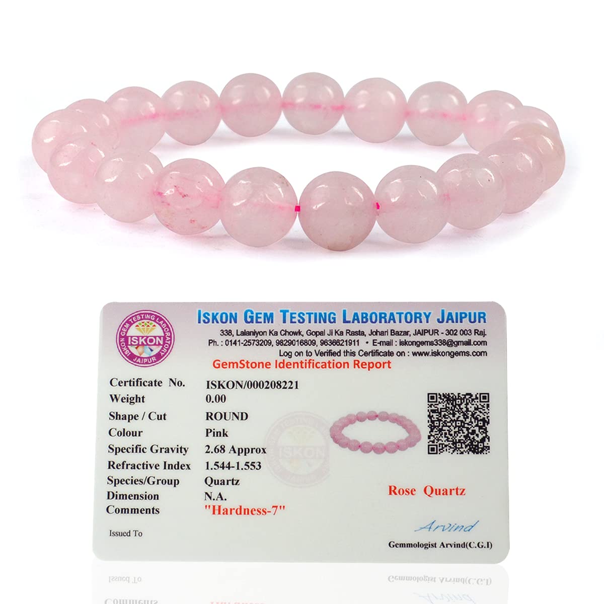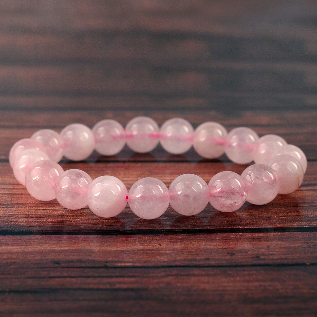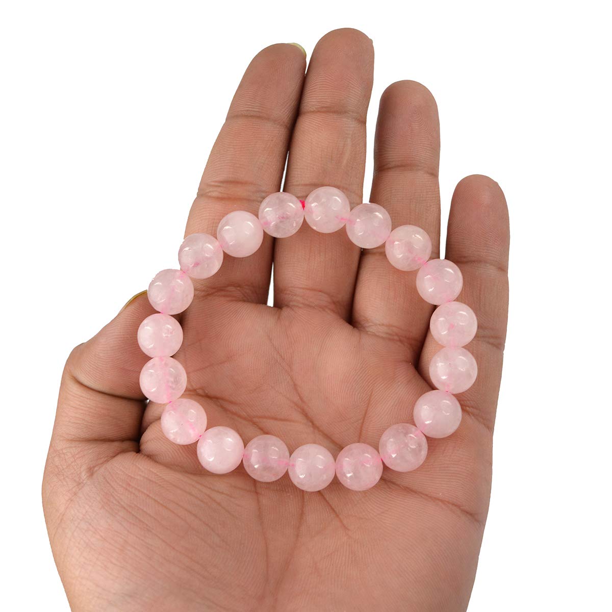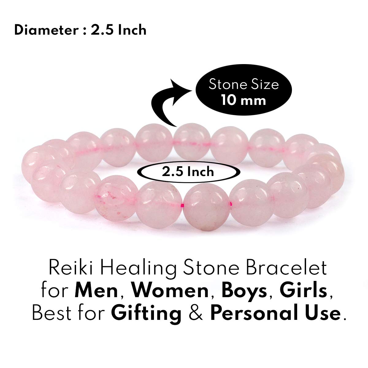 Reiki Crystal Products Unisex Child Natural Certified Rose Quartz Crystal Healing Stones Round Beads Bracelet for Reiki Healing (Pink 10 mm)