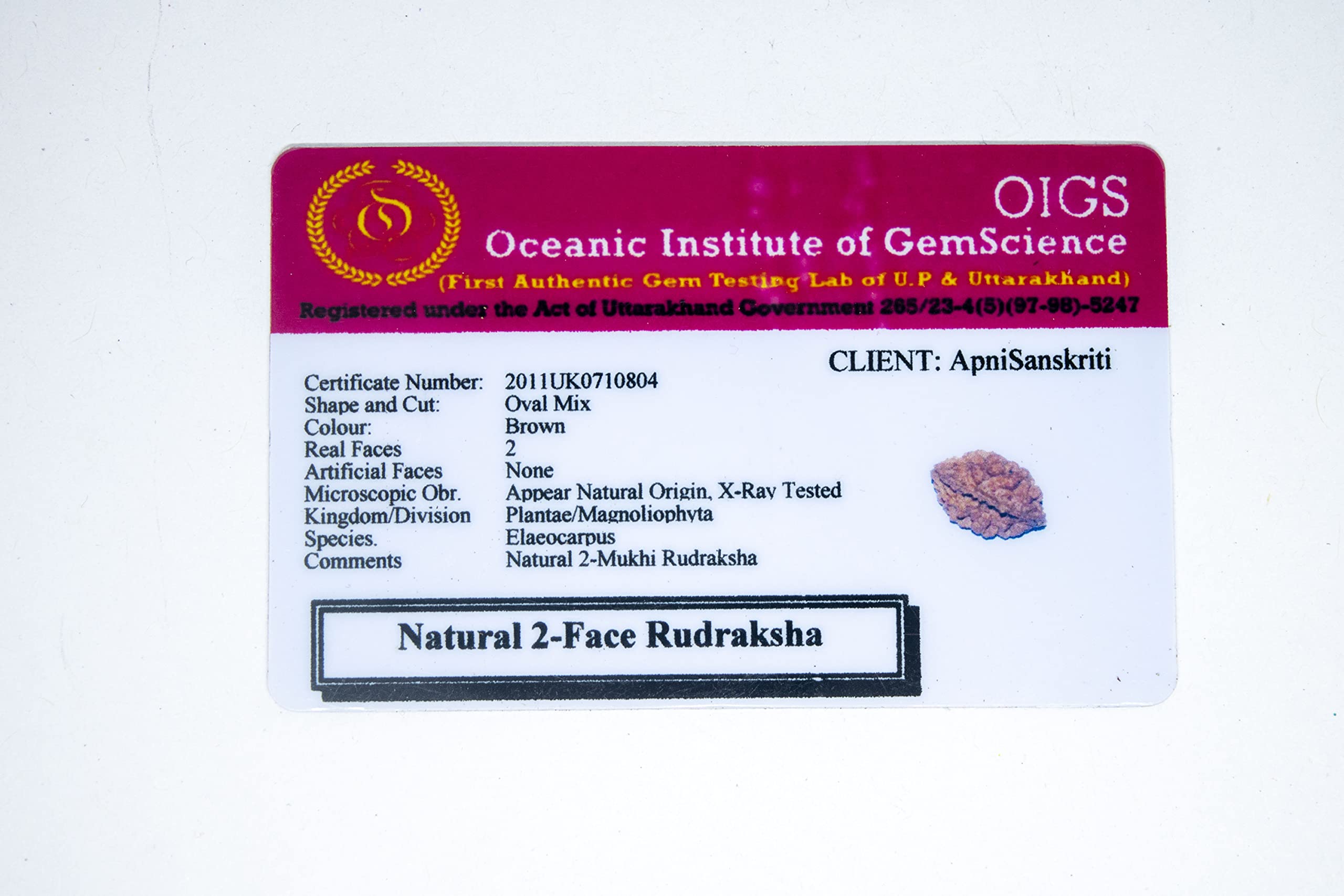Apnisanskriti 2 Mukhi Rudraksha Bead - Natural Brown Two Face Rudraksh (Big Size Lab Certified) - Pack of 1