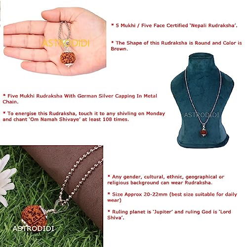 ASTRODIDI Nepali 5 Mukhi Five Face Rudraksha Pendant Locket with White Metal Capping and Chain for Men and Women