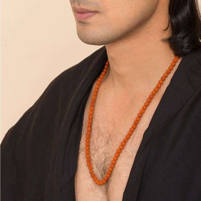 • This Rudraksha Mala has Panchamukhi (five-faced) Rudraksha beads.
