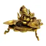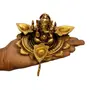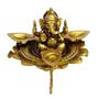 ESPLANADE Brass Ganesha Ganesh Murti Idol on Lotus with Three Leaves Design Diya Deepak Showpiece - Golden - 4" Inches