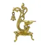 REOMEK Handicraft Brass Peacock Design Showpiece Diya|Oil Lamp Deepak with Bell for Diwali Pooja/Puja Home Decoration and Gifts (15.5 x 7.5 x 20.5 cm Gold Lotus Shaped 1 Wick)