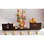 Decorden temple ghar mandir shelfis made of compressed wood in premium finish style. This home temple shelf is exquisite design work on its finest quality wooden body that holds 5 decorative bells. We all love to keep our idols in the best-of-class pooja temples in our house. It shows our passionate devotion to our Gods and Goddesses. Pooja-temple is the most sanctified place in our house. A well-designed pooja temple comprises ample space for placing our deities. t is an attractive hand-painted wooden pooja temple by Homecrafts that is spacious and well-ventilated for conveniently keeping your idols. It features a wooden door that can be easily opened using round wooden knobs. This pooja temple features an adjustable wooden drawer for storing your pooja accessories and holy books. This pooja temple is prepared from decorated mdf with deco paint with bells. It looks exceptional and creates a spiritual ambience. It features extra glossy and attractive looks for being an ideal decorative showpiece for home décor. This pooja temple features remarkably expressive and strikingly realistic construction. This home temple shelf by Wood KartIndia is prepared from medium density fiberboard and features premium quality deco paint. It employs compressed wood in its construction and highlights attractive and stylish finishing. It features exquisitely designed work on its premium quality wooden body. Its 5 decorative bells epitomize the temple shelfâs beauty and enhance the pooja-room décor. The dimensions of this home temple shelf measure 45.7 cm in length 15.2 cm in width and 8.8 cm in height. It has a wall-mounted design that makes it easy to hang in your pooja room. It provides ample space for keeping beautiful figurines of your Gods and Goddesses. It is a multi-purpose shelf that can be used for home temple wall temple wall corner and living room décor. It is best suitable for those devotees who have limited space available for their pooja-temple.