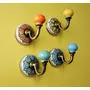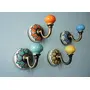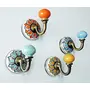 Ariko Decor- Artisan Assorted Floral Design Colourful Wall Hooks for Hanging Clothes Jewellery Bathroom Kitchen Towel Hook- Pack of 4 Ceramic