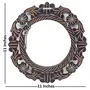 Wooden Wall Decor Key Holder With a Mirror Stylish wall decor product made from high quality wood. This product is used for hanging keys and is handcarved with leaves design on round shape.Colour :- Black Type :- Wall Decor Size :- 11 inch Material Used :- MDF Wood"
