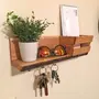 This unique key rack holder with shelf conveniently stores keys papers pen/pencils and mail all in one location. Perfect for entrance foyers behind door and kitchens. Wall Mount Wooden Key Holder Stand with Wall Decor Shelf - Home/Office Decor. Made of excellent high-grade ply wood with wood grain finish wall shelf to keep a beautiful figurine or showpiece and 3 steel knobs for hanging all types of keys .Utilitarian shelf can house your phone wallet money clip wristlet sunglasses mail bills etc.