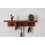 Unique Design a wooden home decorative key holder wall shelves Made of high grade wood with wood grain finish. Perfect for entrance foyers behind door and kitchens. A compact wall shelf with key holder ideal to be placed in the entry way or any wall to hang your keys with 5 Metal hooks for hanging all types of keys and a Wall Shelf to keep a beautiful figurine or showpiece.