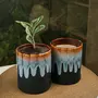 PRODUCT DESCRIPTION:Refresh your garden with a splash of new aesthetic by adding these amazingly handcrafted Ceramic planter pots. Place them in your garden balcony verandah or anywhere inside your home or office for growing plants. The hand glazed water drip pattern in triple shades takes away all the attention also making this set the best gift choice for several occasions like birthdays office parties housewarming anniversaries festivals etc.FEATURES:These handcrafted studio pottery pots are perfect for planting your favourite plants.Ideal to be kept in your garden balcony or anywhere indoors they can work as both floor or table planters.These cylindrical planters are beautifully hand glazed to depict a beautiful splashed pattern with triple tones of Honey Spruce Blue & White.NOTE:Please refer to the dimensions in the image.Each planter comes with a drainage hole at the bottom for excess water.There may be a slight variation in the glazing color or finish of the product as the glazing is done inside the furnace at a very high temperature to make the product solid and strong.Due to the firing done it is also sometimes impossible to predict the color of the glazing or finish. Hence the actual product may differ slighty from the images.This product is not made of Bone China.CARE INSTRUCTIONS:Handle with care.Remove the dust gently with a mildly wet cloth.