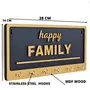 Modern Stylish Wooden Key Holder with 6 Hooks Black Golden Color for Wall Decoration (Happy Family)