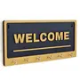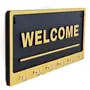 Modern Stylish Wooden Key Holder with 6 Hooks Black Golden Color for Wall Decoration (Welcome)