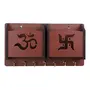 Keep your entryway neat and tidy with this wall-mounted key holder. Featuring metal hooks for hanging keys leashes and scarves while a top slot creates storage for letters sunglasses wallets and cell phones keeping the most important items for when you enter or exit your home. Key-hole brackets on the back of the rack allow you to easily mount this organizer on anyway in your home office or bedroom. Not only can you keep keys and mail you can easily transform this organizer to hang in your bedroom for hanging jewellery and other fashion accessories. With a brown finish and a natural wooden construct this wall-mounted rack is perfect with all home and office decors.