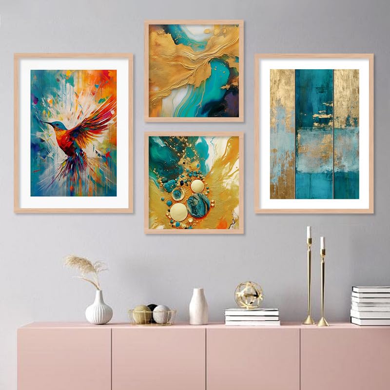 AKARSHNAM - Paintings Modern Art Wall Decor Framed Paintings for Bedroom Living Room - Framed Wall Posters/Paintings with Frame - Paintings for Wall Decoration, Set of 4 (Bird)