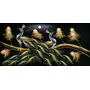 This painting captures the magic of the night with two elegant peacocks perched on a branch, their colorful plumage beautifully detailed and illuminated by a full moon. The serene scene is accentuated by birds flying across the night sky and stylized golden-hued trees, creating a mystical atmosphere. The intricate details and vibrant colors make the painting a visual delight. Features: Handmade painting on high-quality velvet Detailed depiction of a serene mountain retreat Vibrant colors and intricate details on a rich, textured backdrop Ideal for nature-themed and wildlife-inspired spaces Unique blend of traditional art and wildlife elements Dimensions: Height: 60 cm Width: 122cm Materials: Velvet fabric Natural pigments Traditional painting tools Care Instructions: To maintain the beauty and integrity of this velvet painting, avoid exposure to direct sunlight and moisture. Handle with care and clean gently with a soft, dry cloth. Bring home this beautiful piece of wildlife art and let the majestic presence of the Horse family enrich your living space. This handcrafted velvet painting is a testament to traditional Indian artistry and the awe-inspiring beauty of nature, making it a cherished addition to your collection.