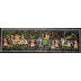 Capture the essence of regal splendor with this handmade polyester painting depicting a traditional royal procession. This stunning artwork portrays a vibrant parade featuring noble figures on elephants, horses, and camels, accompanied by attendants in colorful attire, set against a backdrop of lush landscapes and historical architecture. The detailed brushwork and vivid colors bring this historical scene to life, reflecting the opulence and cultural richness of traditional Indian royalty. Crafted on high-quality polyester fabric, this painting showcases the traditional artistry and meticulous craftsmanship of Indian artists. The intricate details highlight the elaborate costumes, the regal demeanor of the figures, and the festive atmosphere of the procession. This piece is perfect for adding a touch of Indian culture and history to your living space. Whether placed in a living room, study, or cultural center, it serves as a reminder of the royal heritage and artistic elegance of India. Features: Handmade painting on premium polyester fabric Depicts a traditional royal procession with elephants, horses, and camels Vibrant colors and detailed artistry Ideal for cultural and historical decor Reflects traditional Indian craftsmanship and heritage Dimensions: Height: 36 cm Width: 150 cm Materials: Polyester fabric Natural pigments Traditional painting tools Care Instructions: To preserve the beauty and quality of this polyester painting, avoid exposure to direct sunlight and moisture. Handle with care and clean gently with a soft, dry cloth. Celebrate the opulence and grandeur of Indian royalty with this handmade polyester painting. It is a beautiful addition to any space, bringing a touch of cultural richness and historical elegance to your home.