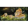 Immerse yourself in the majestic beauty of the wild with this stunning handmade velvet painting depicting a serene tiger family. This artwork captures the essence of wildlife with a mother tiger and her cubs resting amidst lush greenery and a tranquil night sky. The painting is meticulously crafted on luxurious velvet, enhancing the rich colors and intricate details of the tigers' fur and the natural surroundings. The vibrant hues and lifelike portrayal bring the scene to life, making it a captivating piece for any wildlife enthusiast or art lover. Perfect for adding a touch of nature to your living space, this piece can be a focal point in your living room, study, or any space where you seek a connection with the natural world. It serves as a reminder of the beauty and harmony of wildlife, offering a sense of tranquility and admiration for these magnificent creatures. Features: Handmade painting on high-quality velvet Detailed depiction of a tiger family in a natural setting Vibrant colors and intricate details on a rich, textured backdrop Ideal for nature-themed and wildlife-inspired spaces Unique blend of traditional art and wildlife elements Dimensions: Height: 60 cm Width: 122 cm Materials: Velvet fabric Natural pigments Traditional painting tools Care Instructions: To maintain the beauty and integrity of this velvet painting, avoid exposure to direct sunlight and moisture. Handle with care and clean gently with a soft, dry cloth. Bring home this beautiful piece of wildlife art and let the majestic presence of the tiger family enrich your living space. This handcrafted velvet painting is a testament to traditional Indian artistry and the awe-inspiring beauty of nature, making it a cherished addition to your collection.