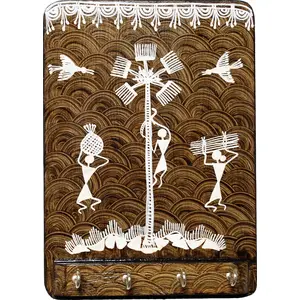 Wooden Warli Painting 4 Hook Key...