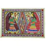 A traditional multi coloured Madhubani painting depicting the flute playing Lord Krishna and worshipping gopis as perceived by the artist. Only hand made paper cured with cow dung is utilized and is a signature livelihood of the painters of Madhubani, Bihar, India.