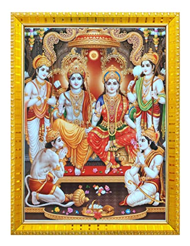 Koshtak Shri Ram Darbar / Ram Sita With Laxman Hanuman Ji Giving Blessing Photo Frame With Laminated Poster For Puja Room Temple (30 X 23 Cm) (Multicolour)