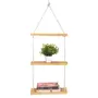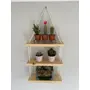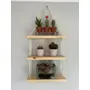 Handmade 3 tier wall hanging shelving. This is an example of small natural pine shelves with white cords.