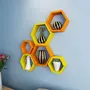 MDF Hexagon Shape Floating Wall Shelves - Set of 6 (Yellow & Orange)