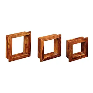 Sheesham Wood Square Wall Shelves Set...