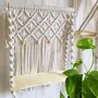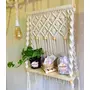 Our macrame wall hanging shelf or boho wall shelf is handmade with pure cotton cords turned into Boho rope and best quality pine wood. It can make any room glow with smile with its strong storage capacity and elegant macrame wall art. This macrame plants hanger has a unique rustic boho home decor shelving and is a work of pure art and craftsmanship