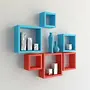 Wall Mount Shelves Square Shape Set of 6 Wall Shelves -Red & Sky Blue