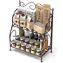 HomeHomeWall AccentsShelvesWROUGHT IRON CRAFTS Wrought Iron 2 Tier Foldable Kitchen Spice Rack Jar Vessels Bathroom Storage Shelf Organizer and Plant Shelf Black Tiered Shelf