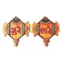 BIKANER GANGAUR IDOL Wooden Crafted Unique Shubh Labh Door Hanging (6X 6 in) Multi Color