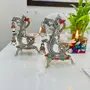 The peacock metal Diya is are designed to complement your home interiors. Based on a stylized peacock design the metal has been treated to form a gold colored base but with a semi precious stone work. Full metallic peacock diya with semi precious stone work. Used as diya in your temple as well is a beautiful decor piece...for your entrance or small nishes of your home.100% Guaranteed will not get black in any weather no matter how you use it German Silver Brass Plated Peacock Samai Diya Diwali Gifts Metal Diya Handmade Indian Pooja Oil Lamp Silver Diya Lamp Akandh 5 Wick Diya Home Decor It is made from German Alloy Metal (Composition of Copper Zinc Nickel); which is finished with silver plating and "oxidized work" on its surface which gives it a "antique look". It has hand made work with beautifully hand crafting on German Alloy Metal. It is made by Metal carving work Rural India artisans who made it an accurate durable and washable product. Light up your home with this beautiful Ganesha Diya. Crafted from a quality German Silver Ganesha Figurine oil lamps add charm to the beauty. People light up these wick lamps for performing aarti of Gods they worship. These are also used as Diwali lights. Made in brass this is a solid piece of collectible figurine sculpture that you would be happy to keep at your home. Gift your loved ones this attractive Diya for special occasions. The premium bell has beautiful sound and is an essential for temple at home. This product is crafted from brass that is considered to be a sacred metal and traditionally used in prayer accessories. The sweet sound of this bell will fill the atmosphere with divine sound during any pooja / ceremony. German Silver Ganesha Samai Diya Diwali Gifts Metal Diya Handmade Indian Pooja Oil Lamp Silver Diya Lamp Akandh Diya Home Decor