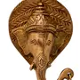 This is a uniquely designed wall hanging made of brass. The elephants trunk carries a bell hanging below. The showpiece has been meticulously carved with an eye to minute details like the Ganesha's decorative head and crown.