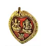 Purpledip Metal Wall Hanging Ganesha-Lakshmi: Auspicious Hindu Symbols on Betel Leaf (11542)