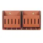 Sehaz Artworks 2-Pocket-Brown-Wall_Shelves Wooden Shelf | Keyholder| (with 7 Keys Hooks)